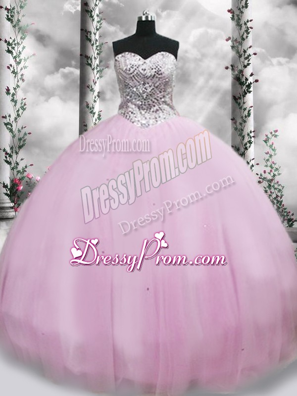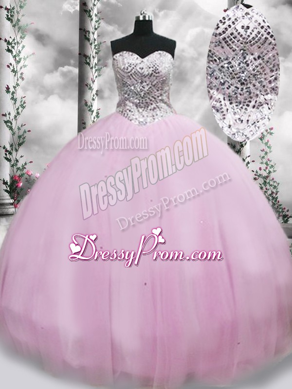 Neckline : SweetheartShown Color : LilacSilhouette : Ball GownsSleeve Length : sleevelessBack Detail : Lace upFabric : TulleEmbellishment : BeadingOccasion : Military Ball,Sweet 16,QuinceaneraSeason : Spring,Summer,Fall,Winter