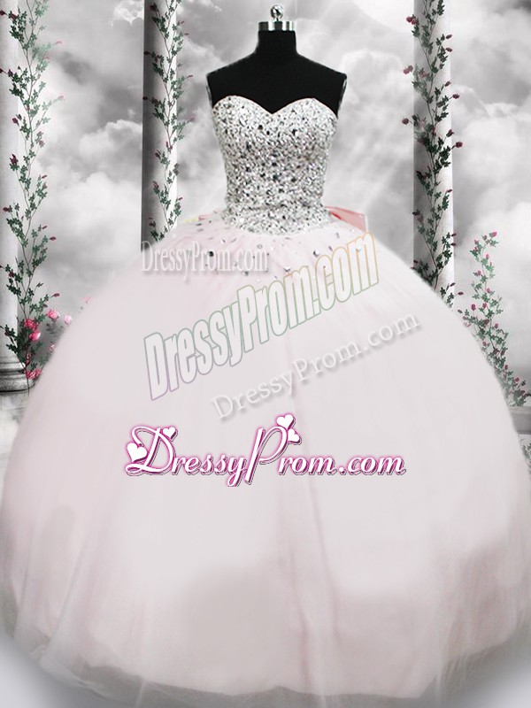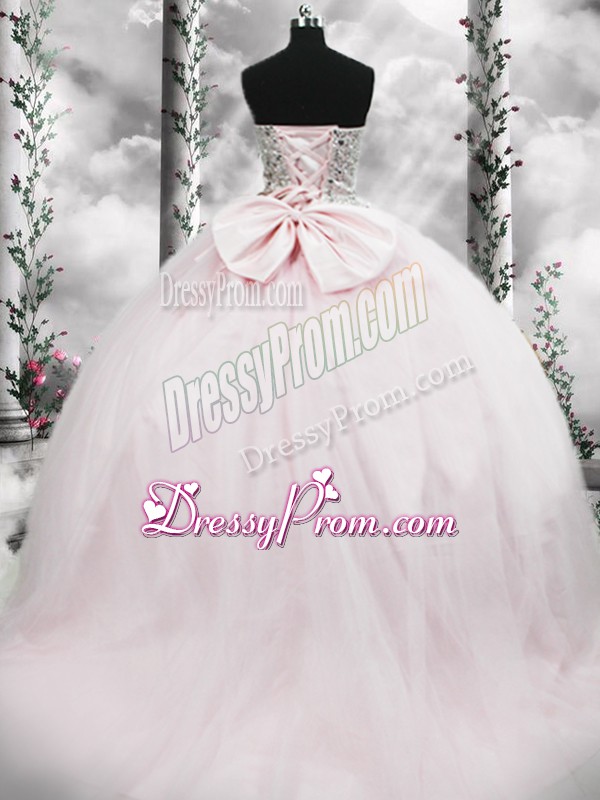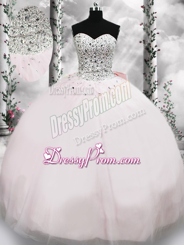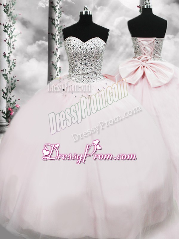 Decent Pink Sleeveless Beading and Bowknot Lace Up Sweet 16 Dresses
