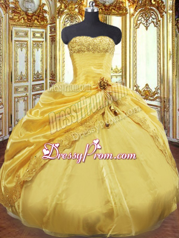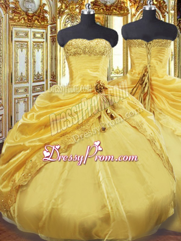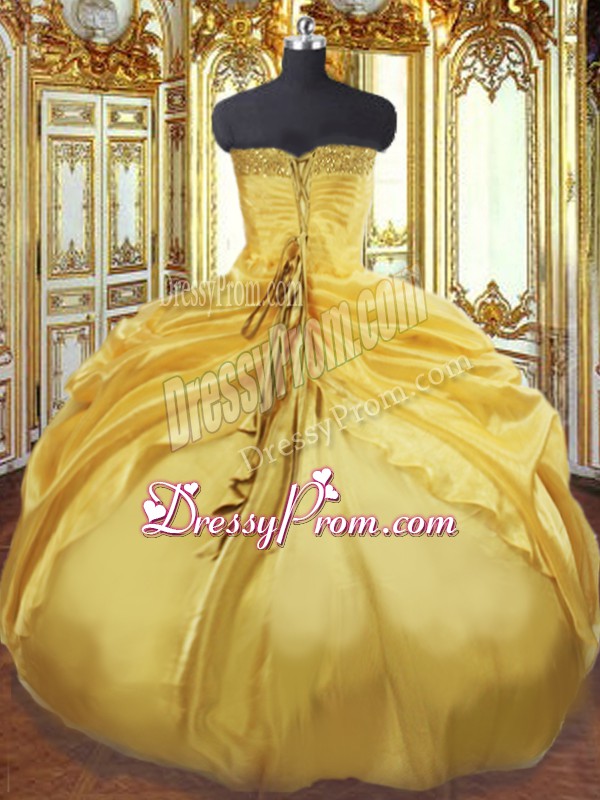Floor Length Ball Gowns Sleeveless Gold Sweet 16 Quinceanera Dress Lace Up