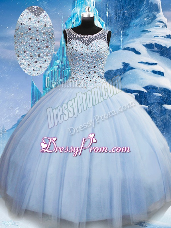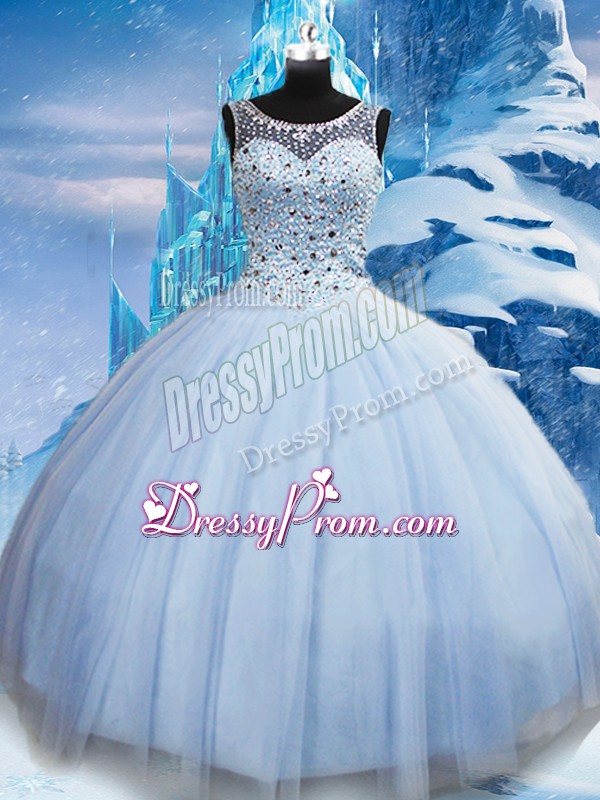 Neckline : ScoopShown Color : Light BlueSilhouette : Ball GownsSleeve Length : sleevelessHemline : floor lengthBack Detail : Lace upFabric : TulleEmbellishment : BeadingOccasion : Military Ball,Sweet 16,QuinceaneraSeason : Spring,Summer,Fall,Winter