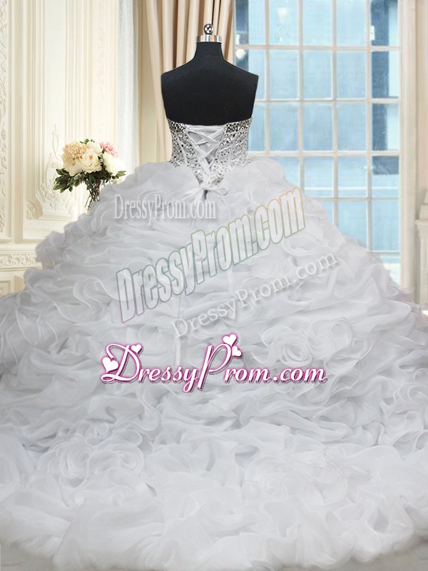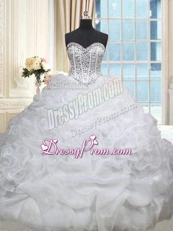 Neckline : SweetheartShown Color : WhiteSilhouette : Ball GownsSleeve Length : sleevelessBack Detail : Lace upFabric : OrganzaEmbellishment : Beading,Pick UpsOccasion : Military Ball,Sweet 16,QuinceaneraSeason : Spring,Summer,Fall,Winter