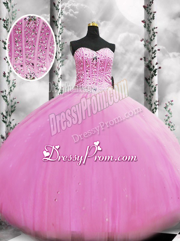 Suitable Floor Length Lilac Ball Gown Prom Dress Tulle Sleeveless Beading