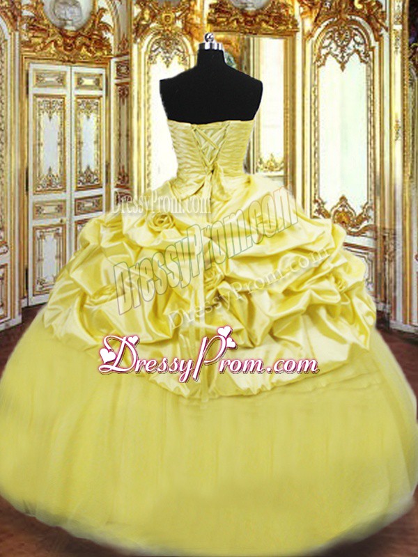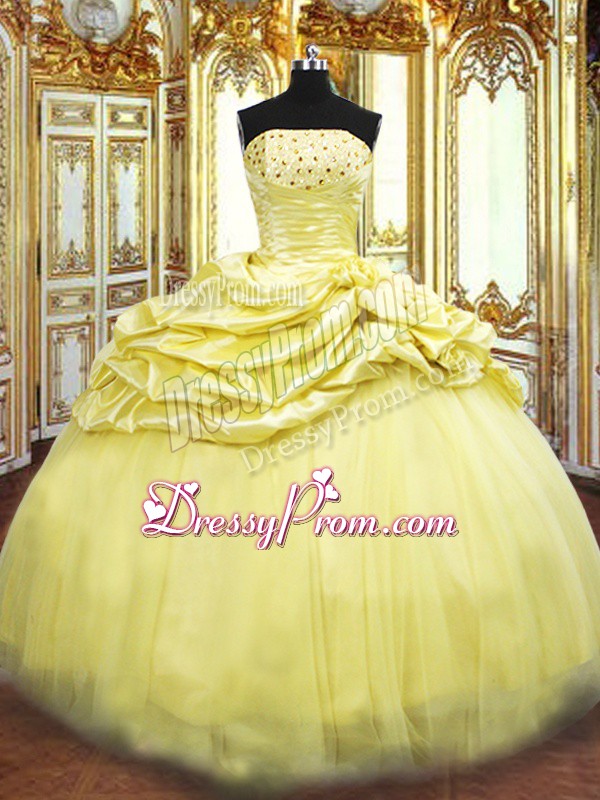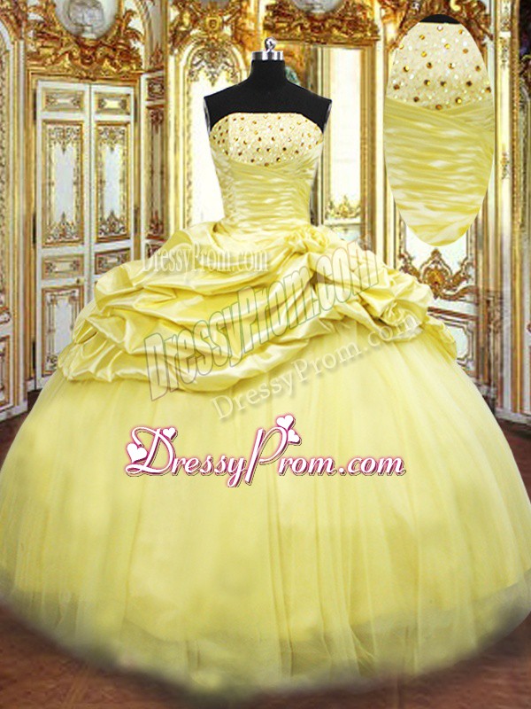 Colorful Floor Length Lace Up Sweet 16 Dress Gold for Military Ball and Sweet 16 and Quinceanera with Beading and Pick Ups