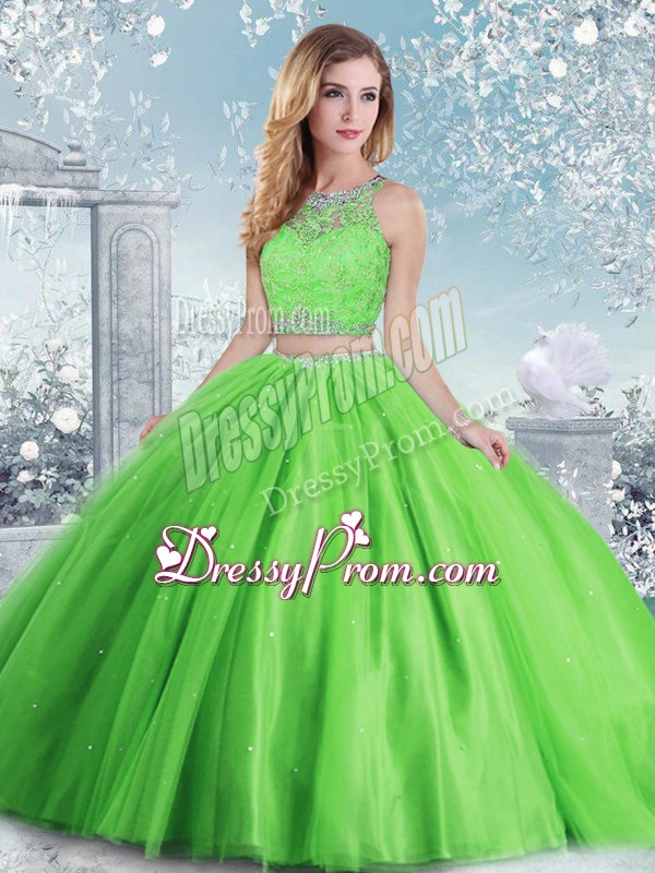 Neckline : ScoopShown Color : Spring GreenSilhouette : Ball GownsSleeve Length : sleevelessHemline : floor lengthBack Detail : Clasp handleFabric : TulleEmbellishment : Beading,SequinsOccasion : Military Ball,Sweet 16,QuinceaneraSeason : Spring,Summer,Fall,Winter