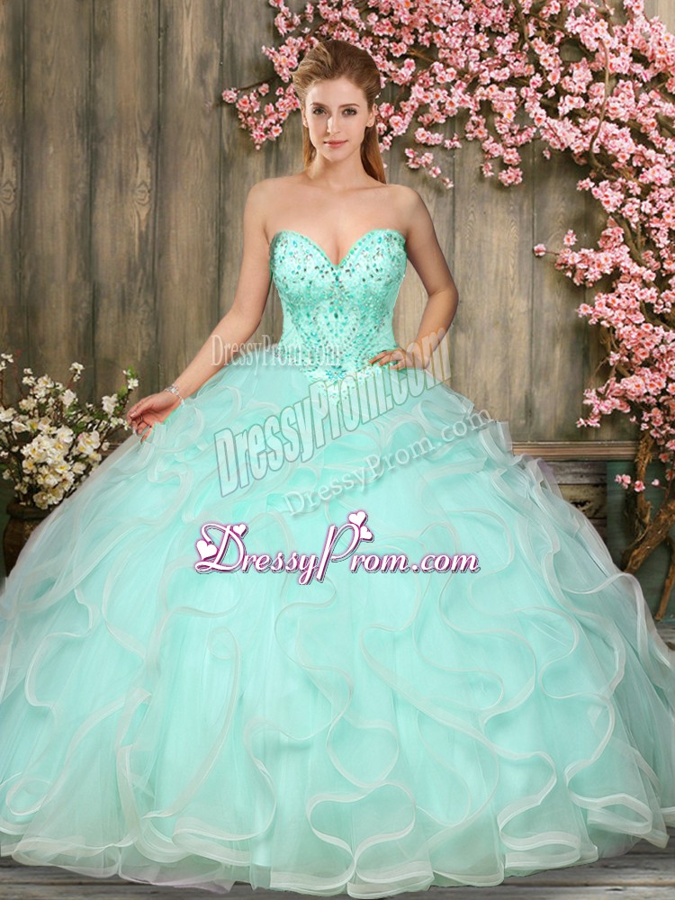 Neckline : SweetheartShown Color : Apple GreenSilhouette : Ball GownsSleeve Length : sleevelessHemline : floor lengthBack Detail : Lace upFabric : TulleEmbellishment : Beading,RufflesOccasion : Military Ball,Sweet 16,QuinceaneraSeason : Spring,Summer,Fall,Winter