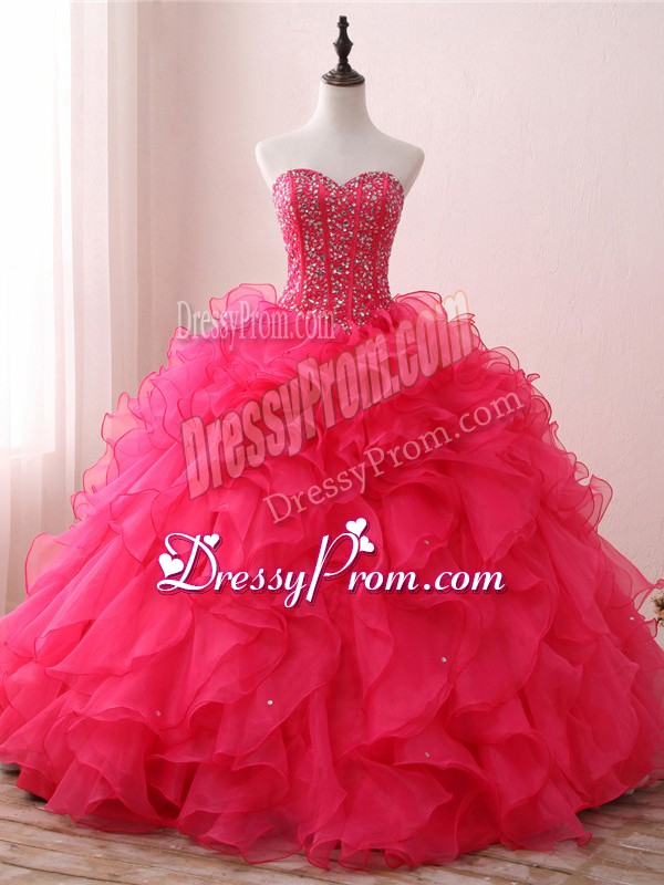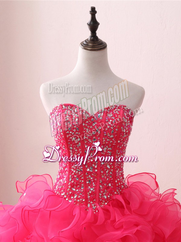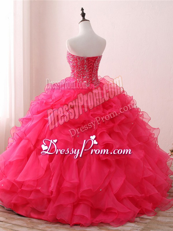 Perfect Sweetheart Sleeveless Lace Up Quinceanera Dress Hot Pink Organza