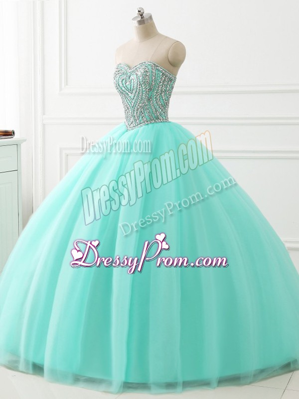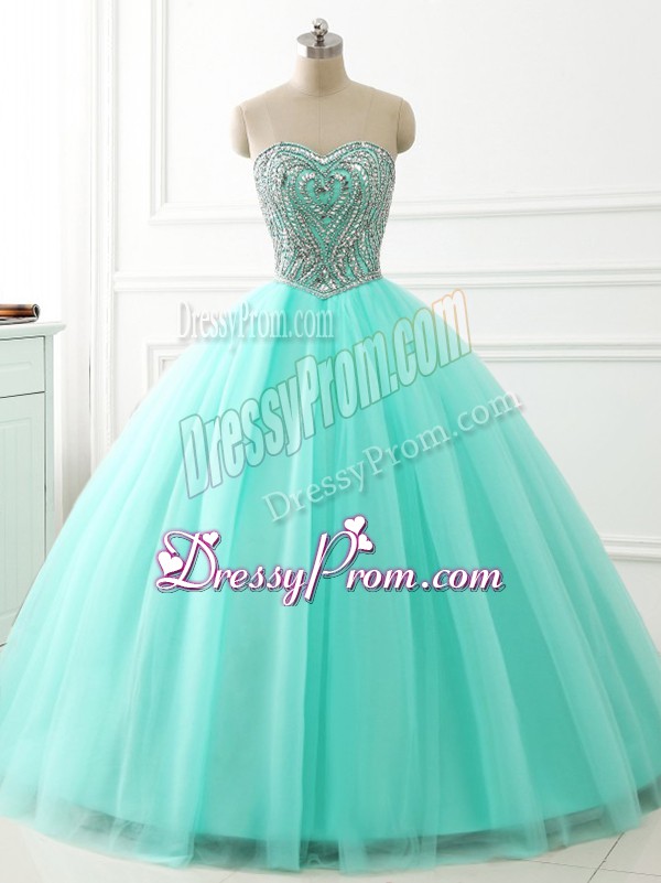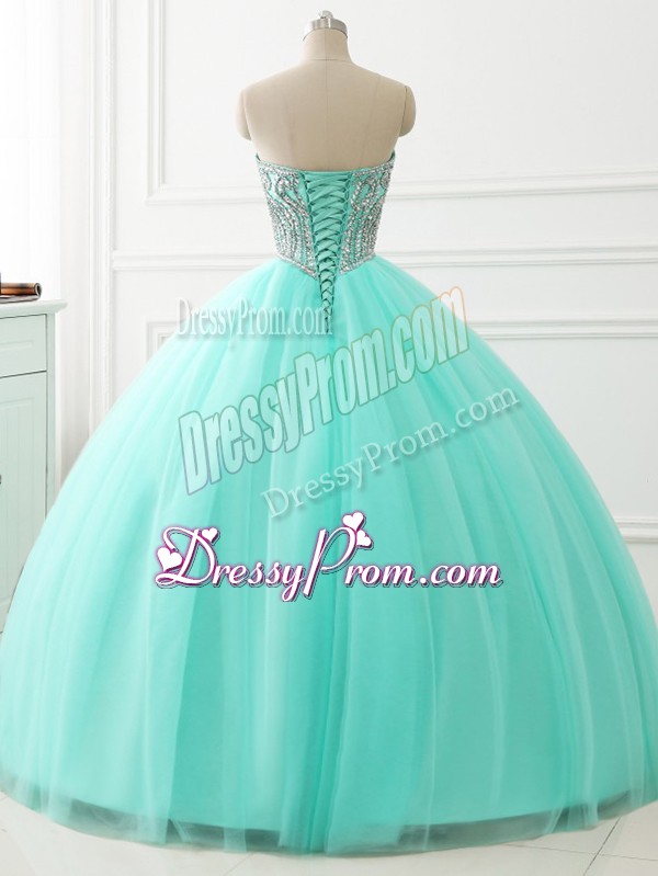 Neckline : SweetheartShown Color : Apple GreenSilhouette : Ball GownsSleeve Length : sleevelessHemline : floor lengthBack Detail : Lace upFabric : TulleEmbellishment : BeadingOccasion : Military Ball,Sweet 16,QuinceaneraSeason : Spring,Summer,Fall,Winter