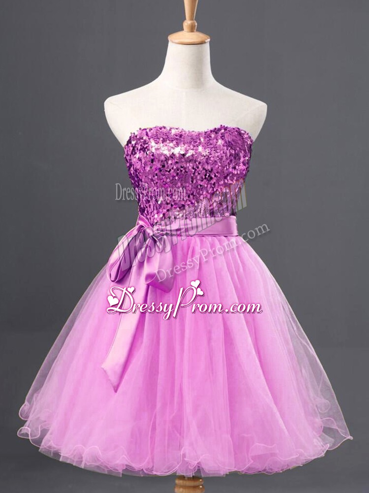 Neckline : SweetheartShown Color : LilacSilhouette : A-lineSleeve Length : sleevelessHemline : mini lengthBack Detail : ZipperFabric : TulleEmbellishment : SequinsOccasion : Prom,PartySeason : Spring,Summer,Fall