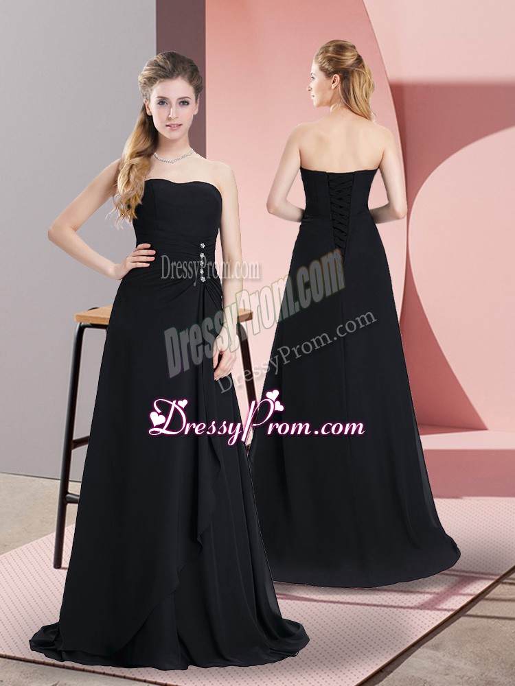 Neckline : SweetheartShown Color : BlackSilhouette : EmpireSleeve Length : sleevelessHemline : floor lengthBack Detail : Lace upFabric : ChiffonEmbellishment : BeadingOccasion : Prom,Military BallSeason : Spring,Summer,Fall,Winter