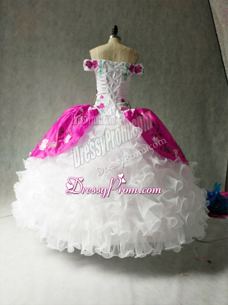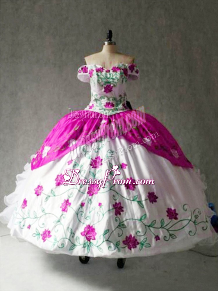 Fashionable Multi-color Organza and Taffeta Lace Up Vestidos de Quinceanera Cap Sleeves Floor Length Embroidery and Ruffles