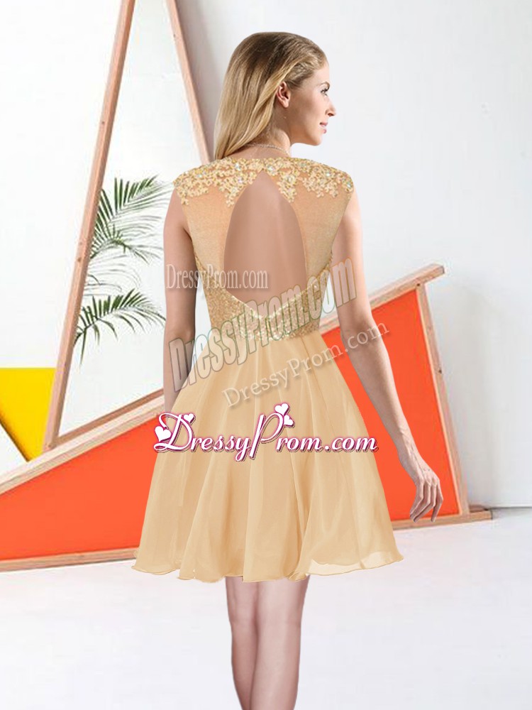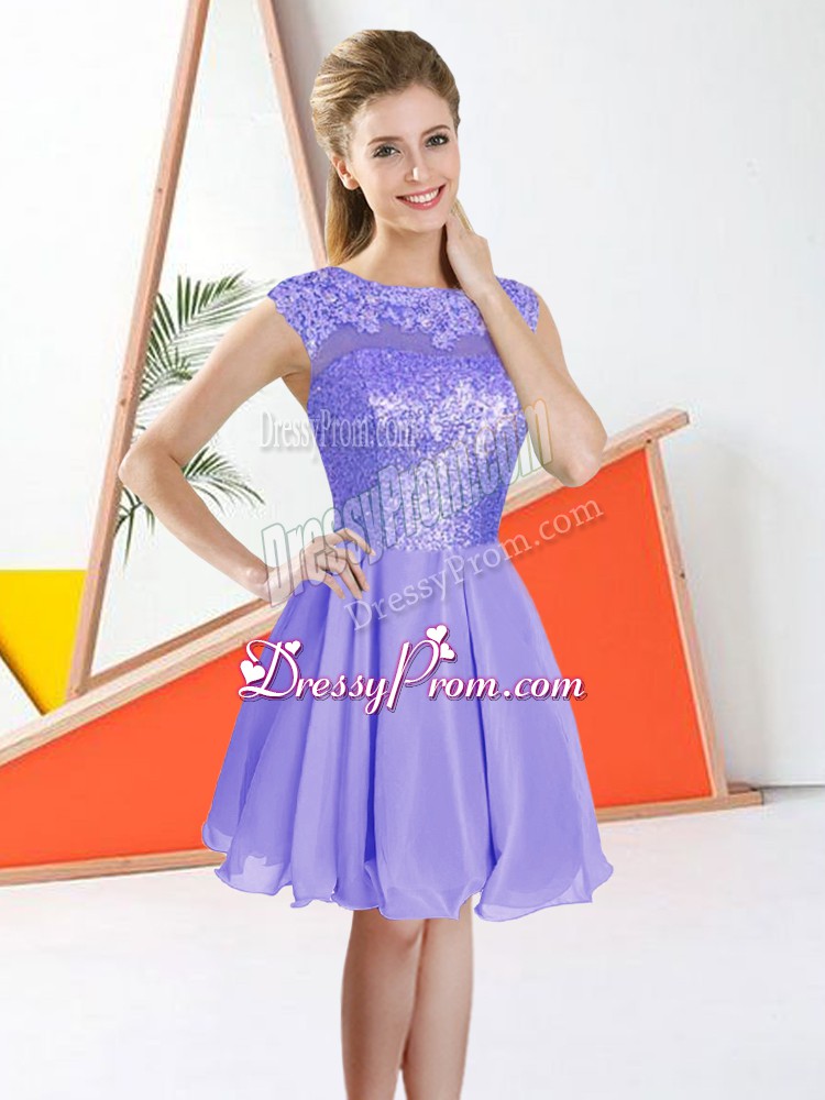 Neckline : BateauShown Color : LavenderSilhouette : A-lineSleeve Length : sleevelessHemline : knee lengthBack Detail : BacklessFabric : ChiffonEmbellishment : Beading,LaceOccasion : Prom,PartySeason : Spring,Summer,Fall