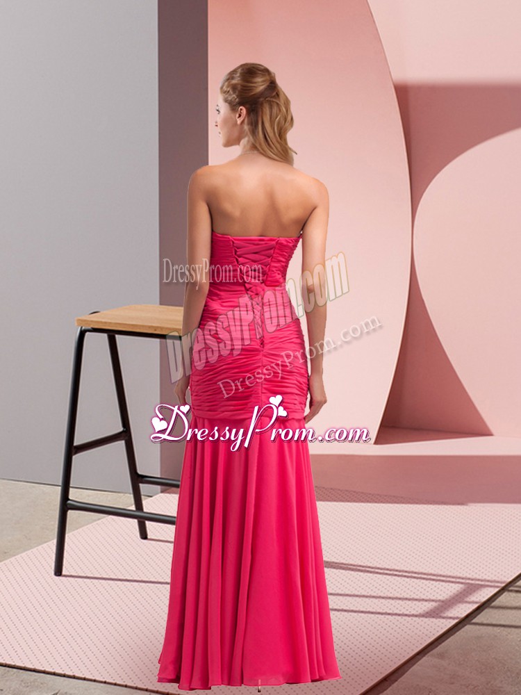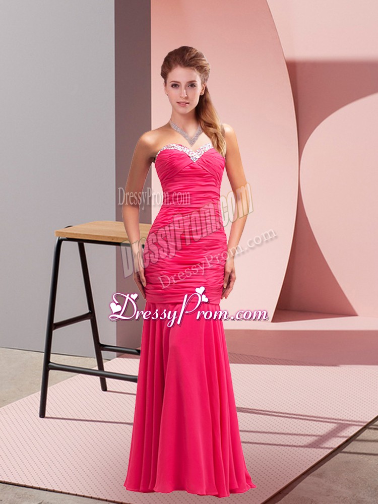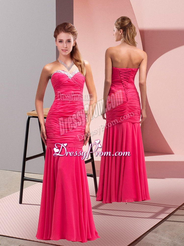 Neckline : SweetheartShown Color : Hot PinkSilhouette : MermaidSleeve Length : sleevelessHemline : floor lengthBack Detail : Lace upFabric : ChiffonEmbellishment : SequinsOccasion : Prom,PartySeason : Spring,Summer,Fall,Winter