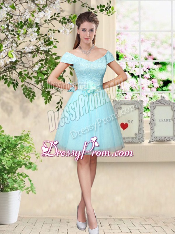 Neckline : SweetheartShown Color : Aqua BlueSilhouette : A-lineSleeve Length : sleevelessHemline : knee lengthBack Detail : Lace upFabric : TulleEmbellishment : Lace,BeltOccasion : Prom,PartySeason : Spring,Summer,Fall