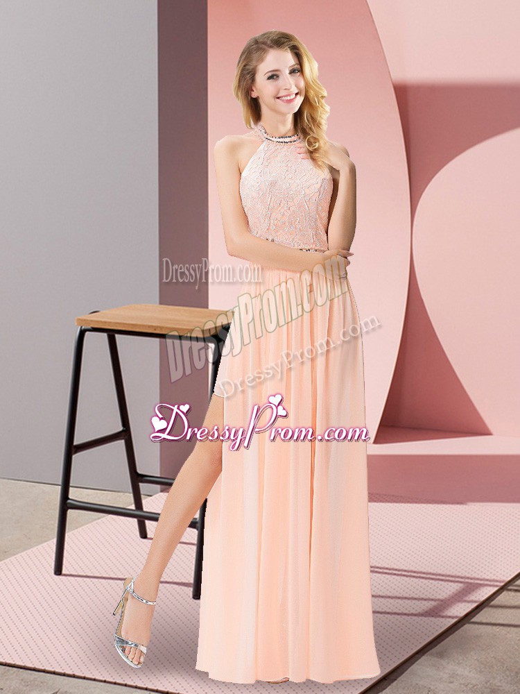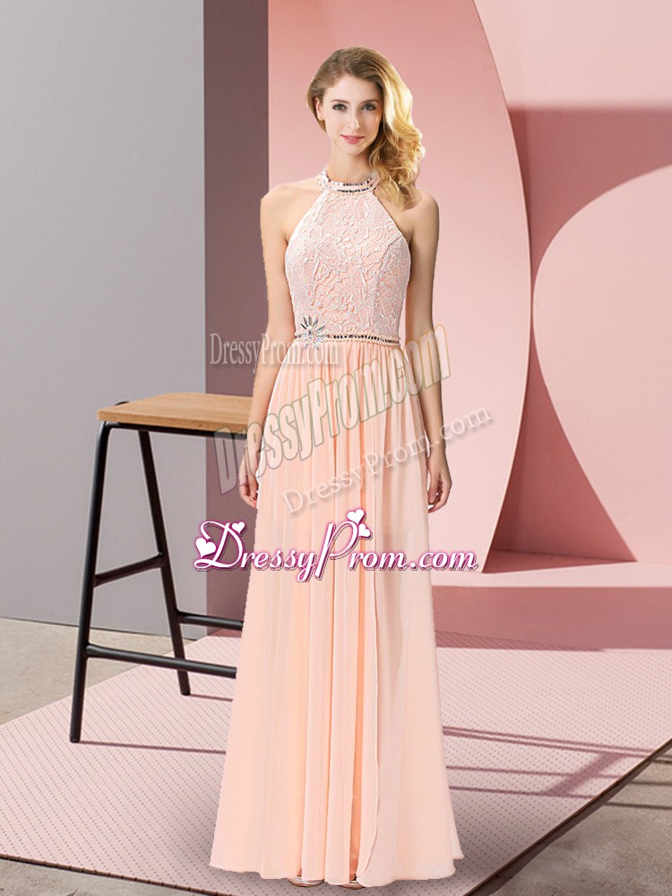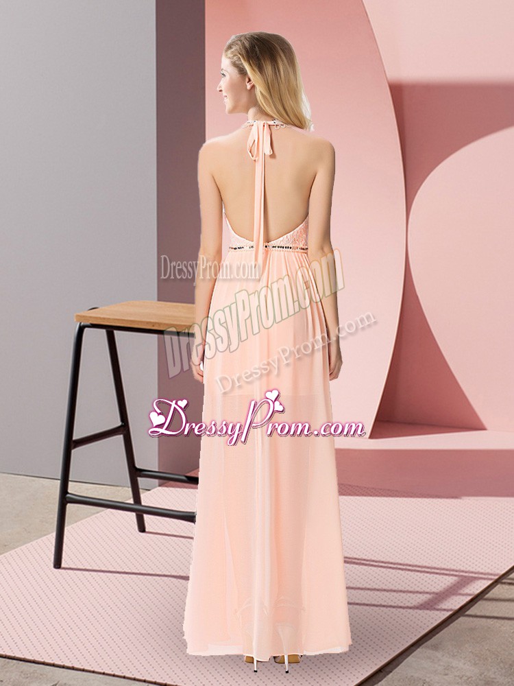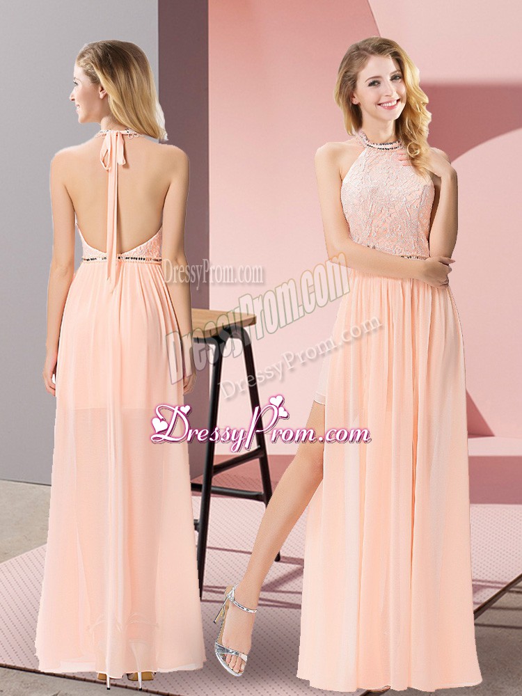 Neckline : Halter topShown Color : PeachSilhouette : Column/SheathSleeve Length : sleevelessHemline : floor lengthBack Detail : BacklessFabric : ChiffonEmbellishment : SequinsOccasion : Prom,PartySeason : Spring,Summer,Fall,Winter