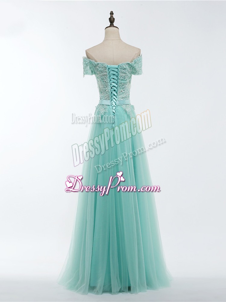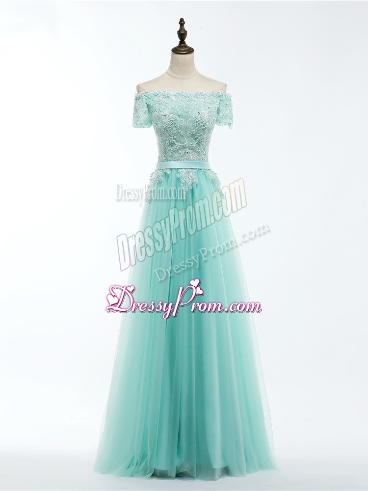 Neckline : ScallopedShown Color : Apple GreenSilhouette : EmpireSleeve Length : short sleevesHemline : floor lengthBack Detail : Lace upFabric : TulleEmbellishment : Lace,AppliquesOccasion : Prom,Party,Military Ball,Sweet 16Season : Spring,Summer,Fall,Winter