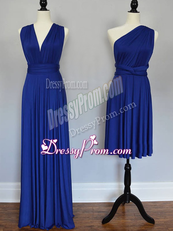 Neckline : One shoulder Shown Color : Royal Blue Silhouette : Empire Sleeve Length : sleeveless Hemline : floor length Back Detail : Lace up Fabric : Chiffon Embellishment : Ruching Occasion : Prom,Party,Military Ball,Wedding Party Season : Spring,Summer,Fall,Winter