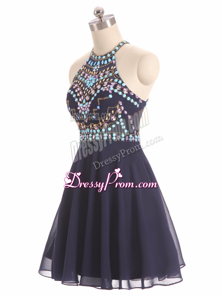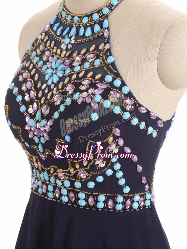 Neckline : Halter topShown Color : BlackSilhouette : A-lineSleeve Length : sleevelessHemline : high lowBack Detail : Side zipperFabric : ChiffonEmbellishment : BeadingOccasion : Prom,Party,BeachSeason : Spring,Summer,Fall