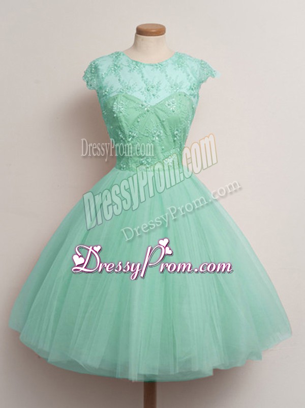 Ball Gowns Vestidos de Damas Apple Green Scoop Tulle Cap Sleeves Knee Length Lace Up