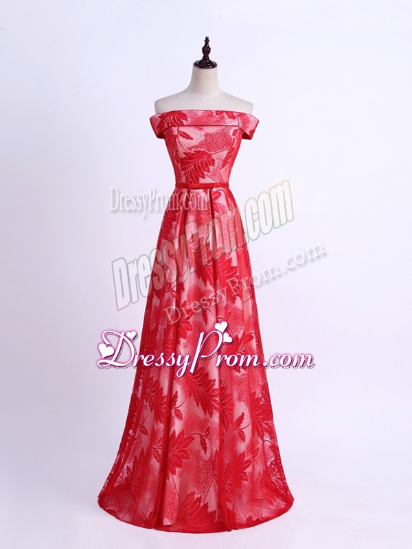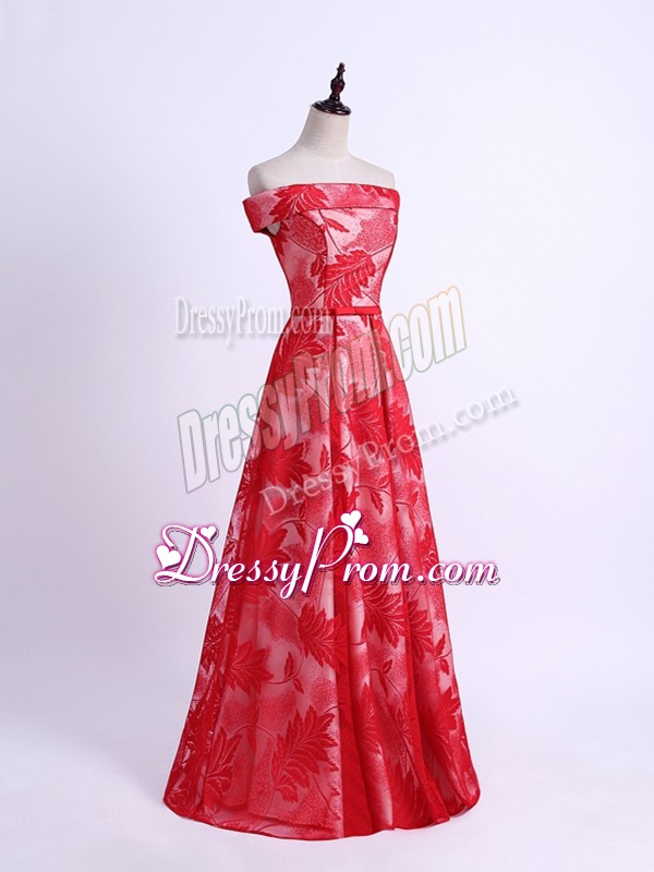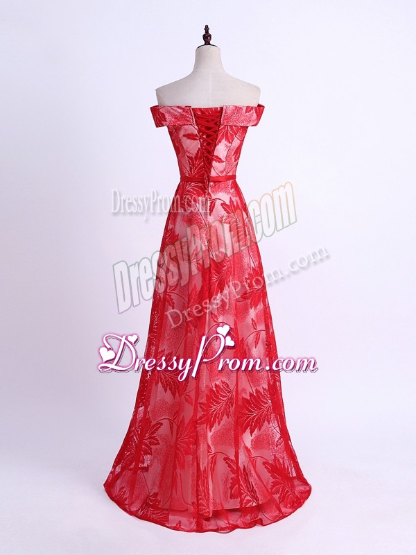 Empire Vestidos de Damas Red Off The Shoulder Printed Sleeveless Floor Length Lace Up