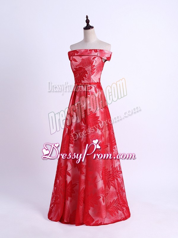Neckline : Off the shoulder Shown Color : Red Silhouette : Empire Sleeve Length : sleeveless Hemline : floor length Back Detail : Lace up Fabric : Printed Embellishment : Pattern Occasion : Prom,Party,Wedding Party Season : Spring,Summer,Fall,Winter