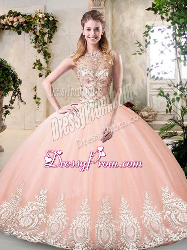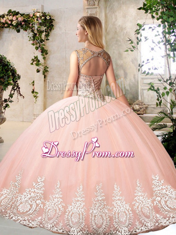 Neckline : ScoopSilhouette : Ball GownsSleeve Length : sleevelessHemline : floor lengthBack Detail : BacklessFabric : TulleEmbellishment : Beading,AppliquesOccasion : Prom,Party,Military Ball,Sweet 16,QuinceaneraSeason : Spring,Summer,Fall,Winter