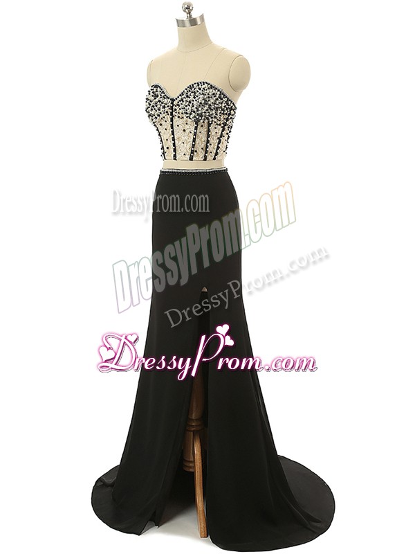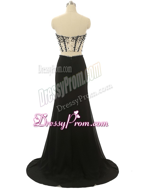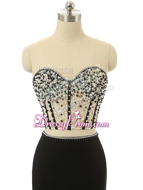 Neckline : SweetheartShown Color : BlackSilhouette : Two PiecesSleeve Length : sleevelessBack Detail : ZipperFabric : Elastic Woven SatinEmbellishment : BeadingOccasion : Prom,PartySeason : Spring,Summer,Fall,Winter
