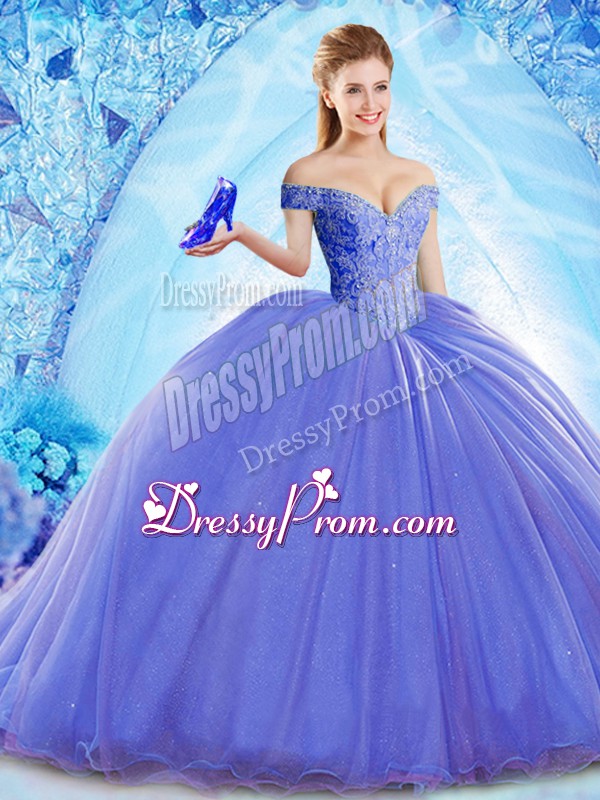 Neckline : Off the shoulderShown Color : BlueSilhouette : Ball GownsSleeve Length : sleevelessBack Detail : Lace upFabric : OrganzaEmbellishment : BeadingOccasion : Military Ball,Sweet 16,QuinceaneraSeason : Spring,Summer,Fall,Winter