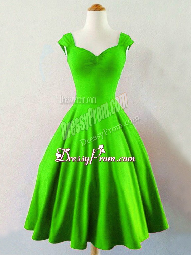 Neckline : StrapsShown Color : GreenSilhouette : A-lineSleeve Length : sleevelessHemline : mini lengthBack Detail : Lace upFabric : TaffetaEmbellishment : RuchingOccasion : Prom,PartySeason : Spring,Summer,Fall