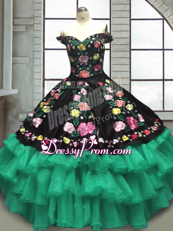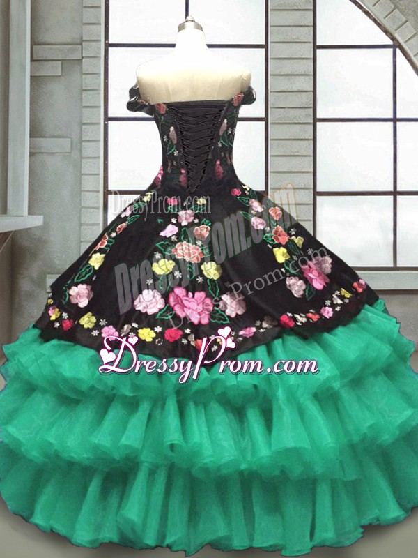 Multi-color Off The Shoulder Neckline Embroidery and Ruffled Layers 15 Quinceanera Dress Sleeveless Lace Up