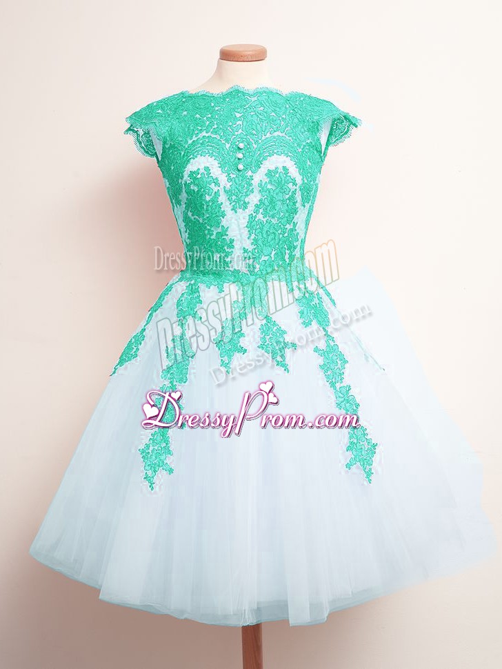 Neckline : ScallopedShown Color : Multi-colorSilhouette : A-lineSleeve Length : sleevelessHemline : mini lengthBack Detail : Lace upFabric : TulleEmbellishment : AppliquesOccasion : Prom,Party,Wedding PartySeason : Spring,Summer,Fall