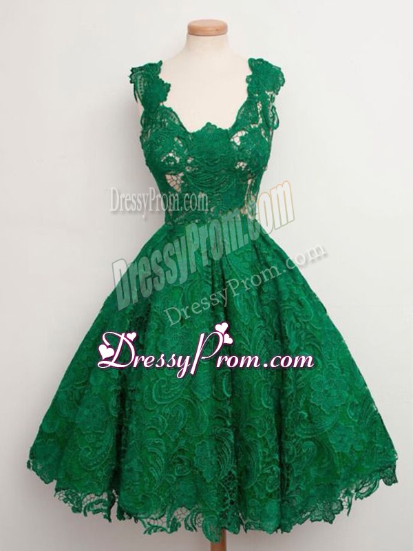 Neckline : StrapsShown Color : GreenSilhouette : A-lineSleeve Length : sleevelessHemline : knee lengthBack Detail : ZipperFabric : LaceEmbellishment : LaceOccasion : Prom,Party,Wedding PartySeason : Spring,Summer,Fall