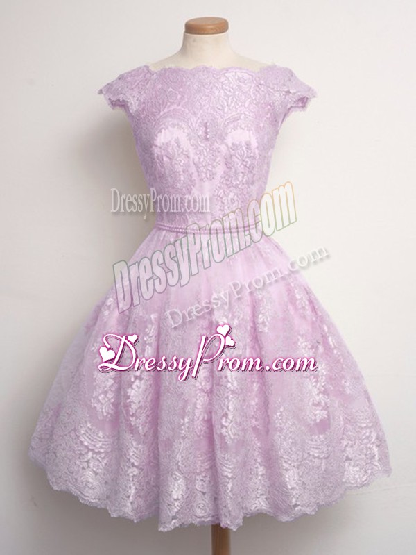 Neckline : ScallopedShown Color : LilacSilhouette : A-lineSleeve Length : cap sleevesHemline : knee lengthBack Detail : Lace upFabric : LaceEmbellishment : LaceOccasion : Prom,Party,Wedding PartySeason : Spring,Summer,Fall