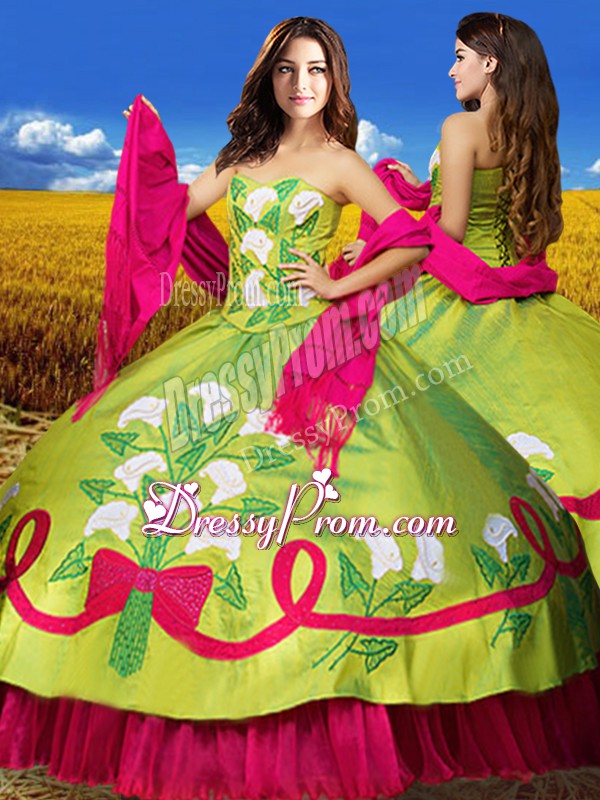 Neckline : SweetheartShown Color : Olive GreenSilhouette : Two PiecesSleeve Length : sleevelessHemline : floor lengthBack Detail : Lace upFabric : Organza,TaffetaEmbellishment : EmbroideryOccasion : Military Ball,Sweet 16,QuinceaneraSeason : Spring,Summer,Fall,Winter