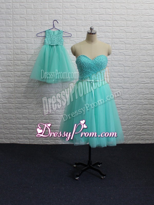 Neckline : SweetheartShown Color : Aqua BlueSilhouette : A-lineSleeve Length : sleevelessHemline : mini lengthBack Detail : Lace upFabric : TulleEmbellishment : BeadingOccasion : Prom,Party,Sweet 16Season : Spring,Summer,Fall