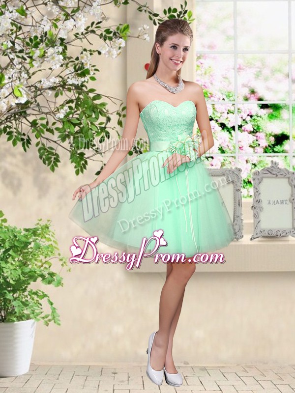 Neckline : SweetheartShown Color : Apple GreenSilhouette : A-lineSleeve Length : sleevelessHemline : knee lengthBack Detail : Lace upFabric : TulleEmbellishment : Lace,BeltOccasion : Prom,PartySeason : Spring,Summer,Fall