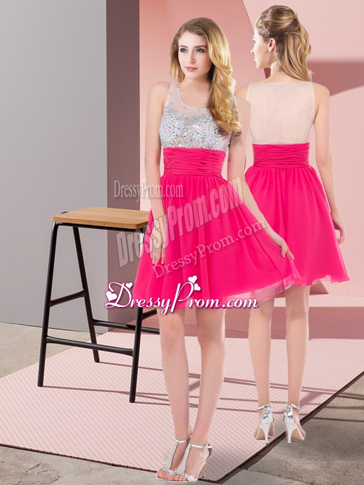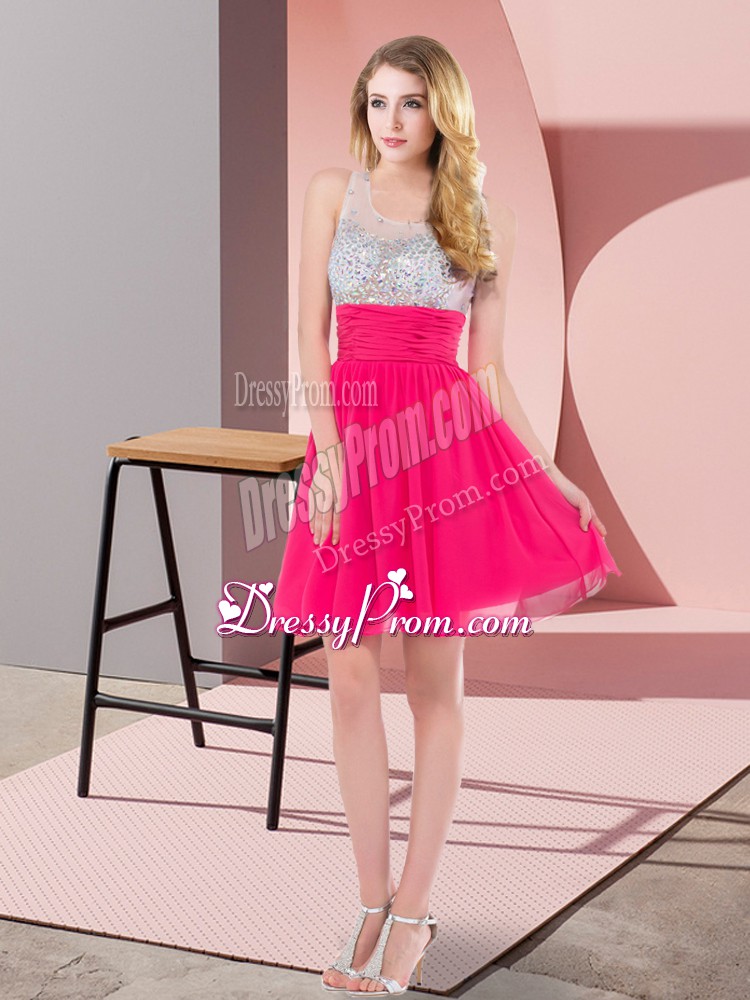 Neckline : ScoopShown Color : Hot PinkSilhouette : EmpireSleeve Length : sleevelessHemline : mini lengthBack Detail : Side zipperFabric : ChiffonEmbellishment : SequinsOccasion : Prom,Party,Sweet 16Season : Spring,Summer,Fall