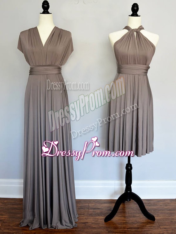 Neckline : Halter topShown Color : GreySilhouette : EmpireSleeve Length : sleevelessHemline : floor lengthBack Detail : Lace upFabric : ChiffonEmbellishment : RuchingOccasion : Prom,Wedding PartySeason : Spring,Summer,Fall,Winter