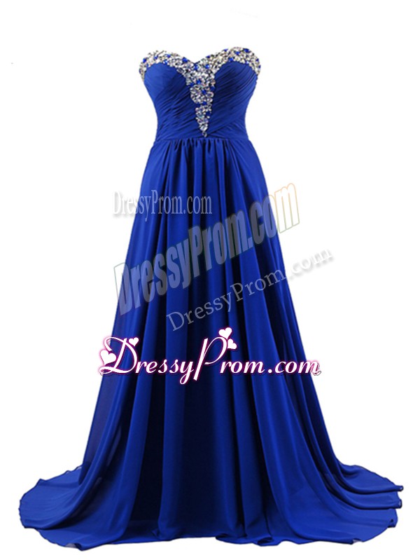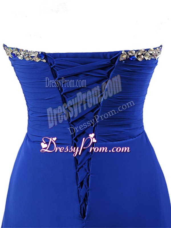 Neckline : SweetheartShown Color : Royal BlueSilhouette : EmpireSleeve Length : sleevelessBack Detail : Lace upFabric : Elastic Woven SatinEmbellishment : BeadingOccasion : Prom,PartySeason : Spring,Summer,Fall,Winter
