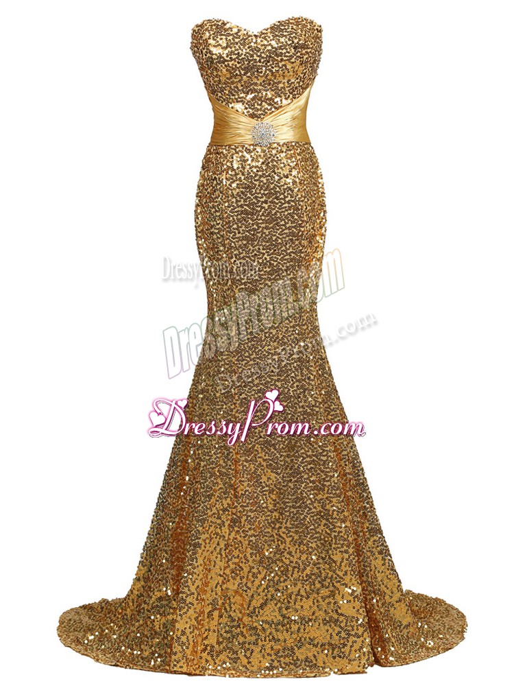 Neckline : SweetheartShown Color : GoldSilhouette : MermaidSleeve Length : sleevelessBack Detail : Lace upFabric : SequinedEmbellishment : SequinsOccasion : Prom,Military Ball,Sweet 16Season : Spring,Summer,Fall,Winter