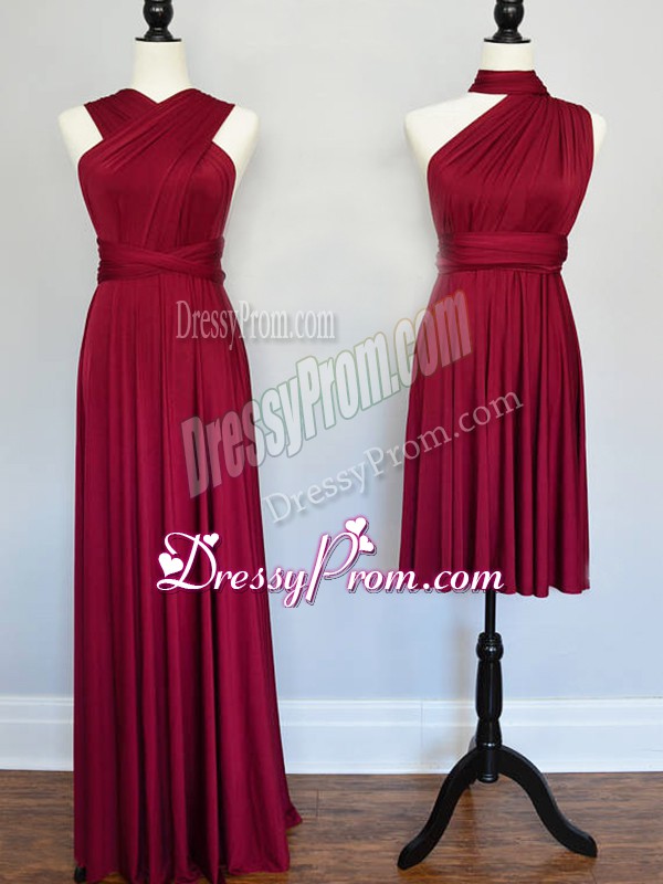Neckline : Halter topShown Color : BurgundySilhouette : EmpireSleeve Length : sleevelessBack Detail : Lace upFabric : ChiffonEmbellishment : RuchingOccasion : Prom,Wedding PartySeason : Spring,Summer,Fall,Winter
