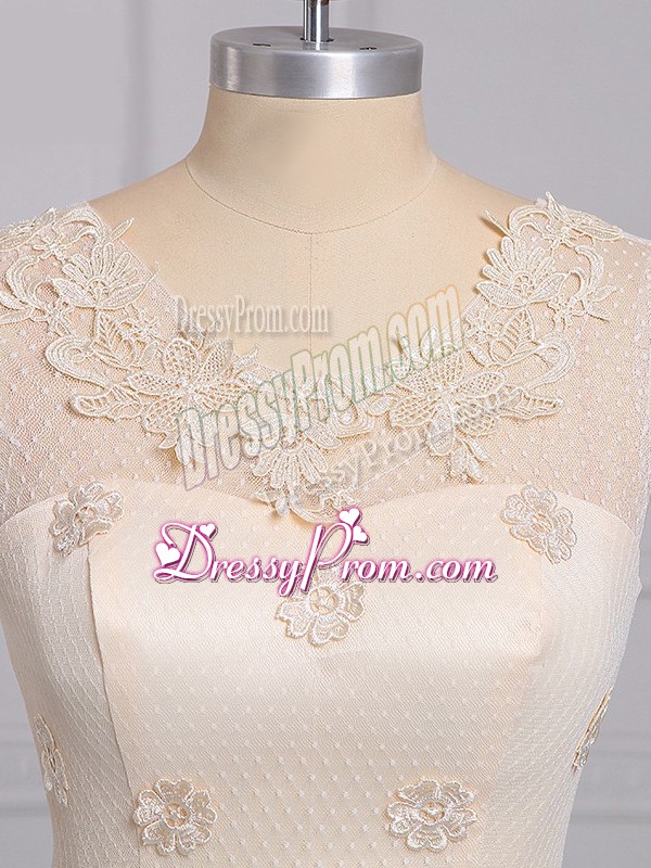Neckline : ScoopShown Color : ChampagneSilhouette : A-lineSleeve Length : sleevelessHemline : mini lengthBack Detail : Lace upFabric : LaceEmbellishment : Appliques,BeltOccasion : Prom,Party,Wedding PartySeason : Spring,Summer,Fall