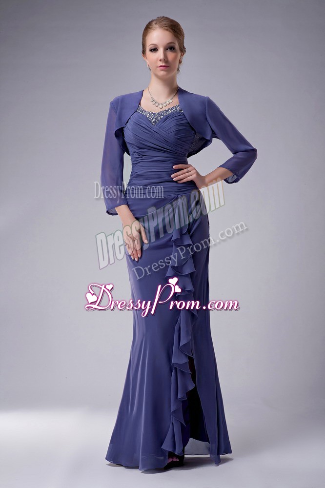 Neckline : StrapsShown Color : BlueSilhouette : MermaidSleeve Length : sleevelessHemline : floor lengthBack Detail : ZipperFabric : ChiffonEmbellishment : BeadingOccasion : Prom,PartySeason : Spring,Summer,Fall,Winter