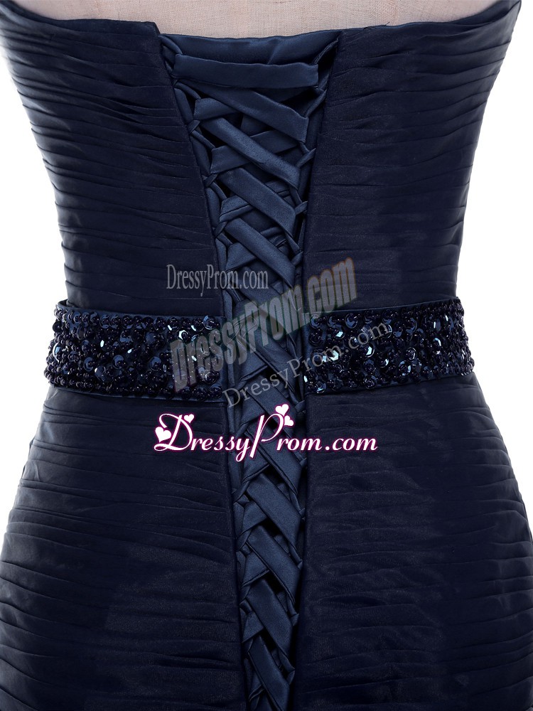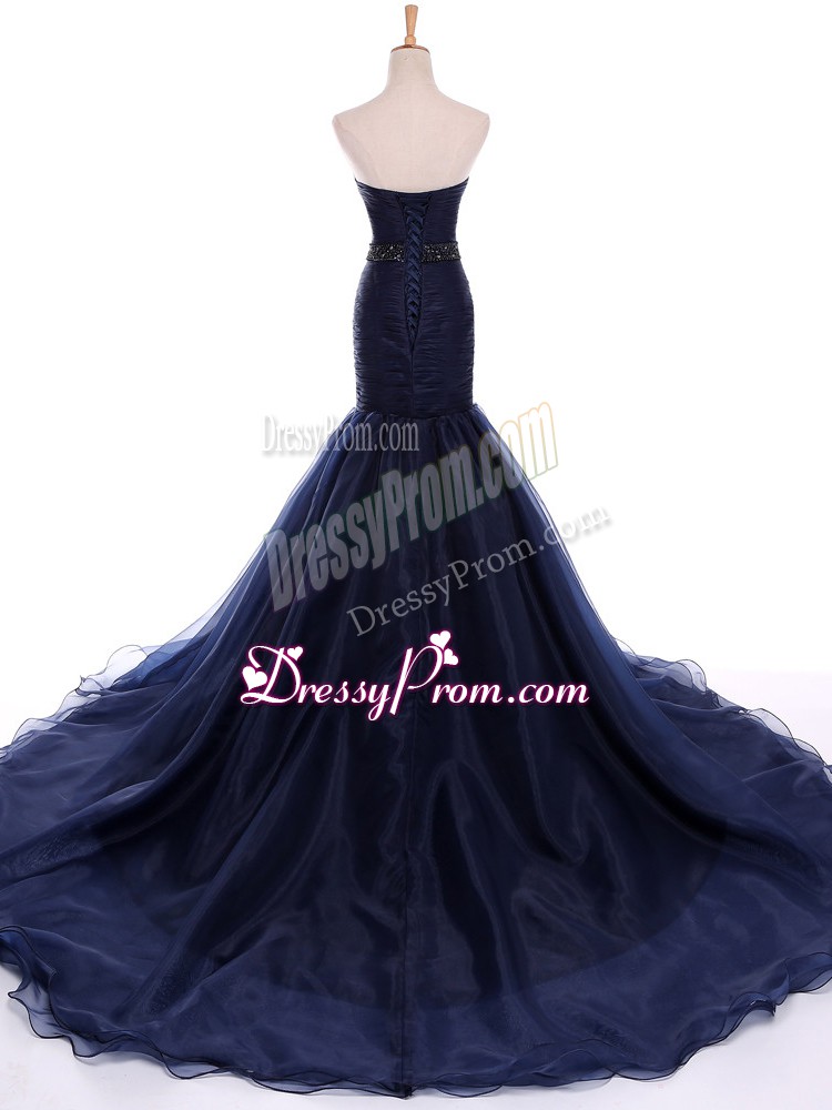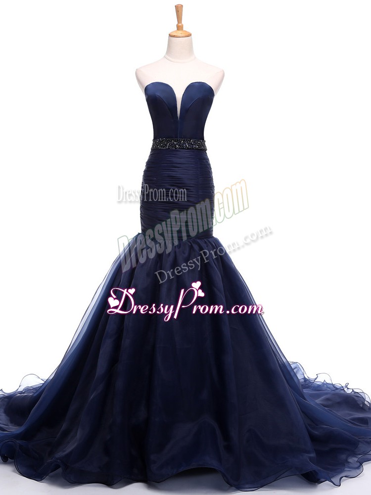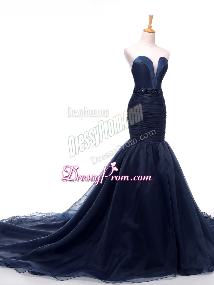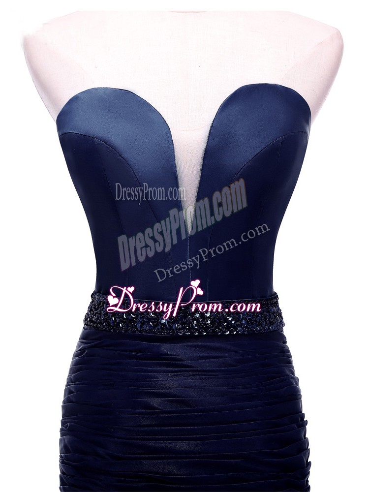 Neckline : SweetheartShown Color : Navy BlueSilhouette : MermaidSleeve Length : sleevelessBack Detail : Lace upFabric : TulleEmbellishment : Beading,RuchingOccasion : Prom,Military BallSeason : Spring,Summer,Fall,Winter