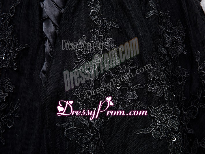 New Arrival Black A-line Beading and Lace and Appliques Evening Dress Lace Up Tulle Sleeveless