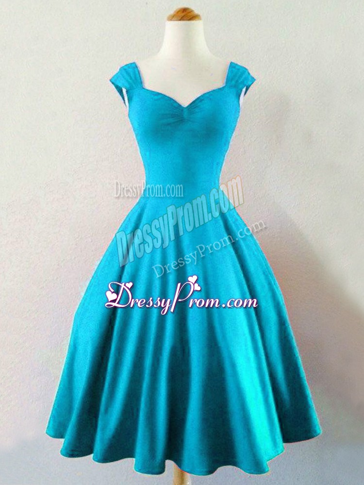 Neckline : StrapsShown Color : Baby BlueSilhouette : A-lineSleeve Length : sleevelessHemline : knee lengthBack Detail : Lace upFabric : TaffetaEmbellishment : RuchingOccasion : Prom,Party,Wedding PartySeason : Spring,Summer,Fall