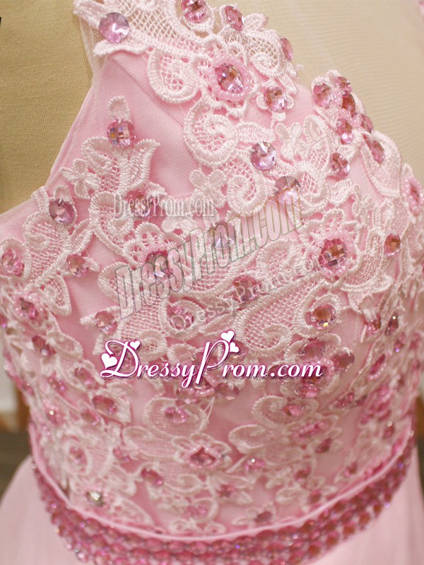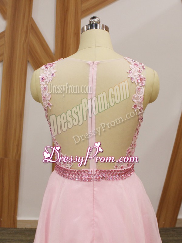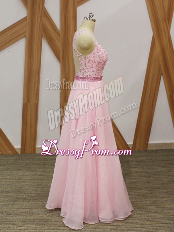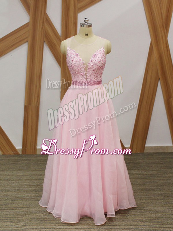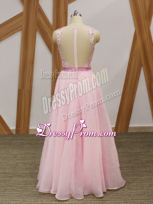 Neckline : V-neckShown Color : Baby PinkSilhouette : A-lineSleeve Length : sleevelessHemline : floor lengthBack Detail : ZipperFabric : ChiffonEmbellishment : Beading,EmbroideryOccasion : Prom,Party,Sweet 16Season : Spring,Summer,Fall,Winter
