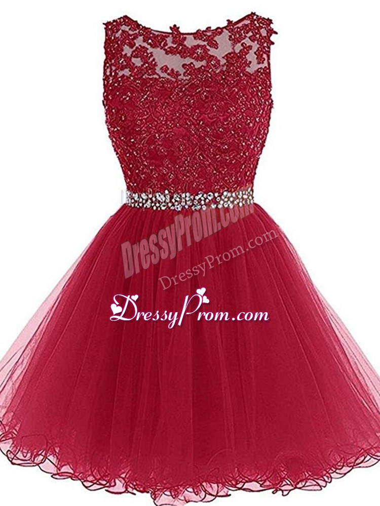 Neckline : SweetheartShown Color : BurgundySilhouette : A-lineSleeve Length : sleevelessHemline : mini lengthBack Detail : ZipperFabric : TulleEmbellishment : Beading,Lace,AppliquesOccasion : Prom,Party,Sweet 16Season : Spring,Summer,Fall
