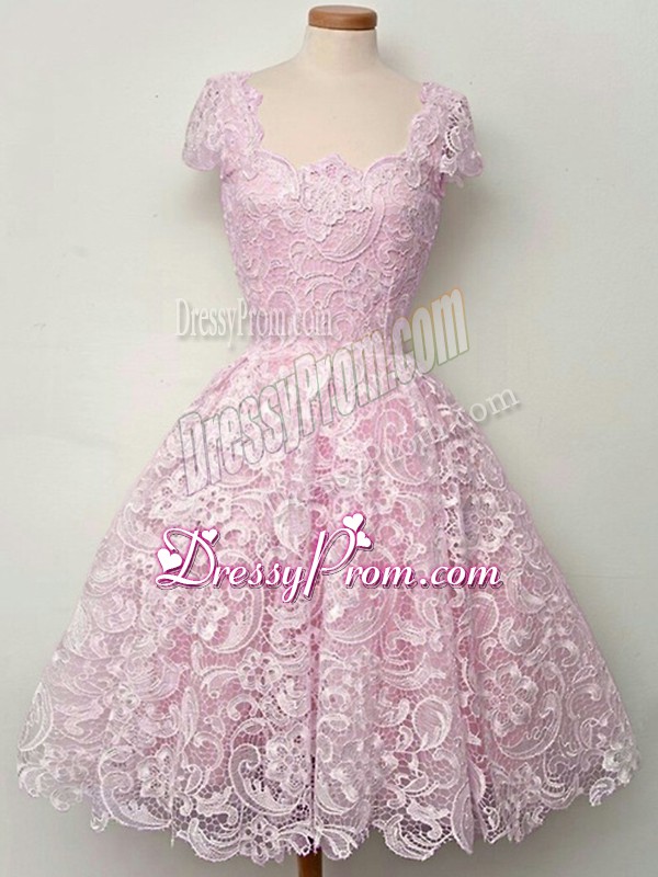 Neckline : StrapsShown Color : LilacSilhouette : A-lineSleeve Length : cap sleevesHemline : knee lengthBack Detail : Lace upFabric : LaceEmbellishment : LaceOccasion : Prom,Party,Wedding PartySeason : Spring,Summer,Fall