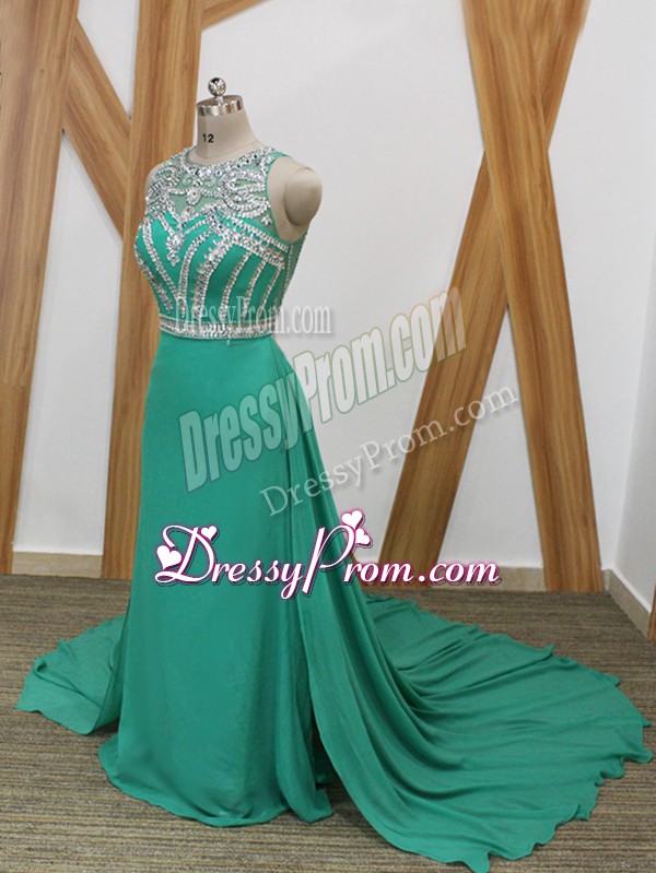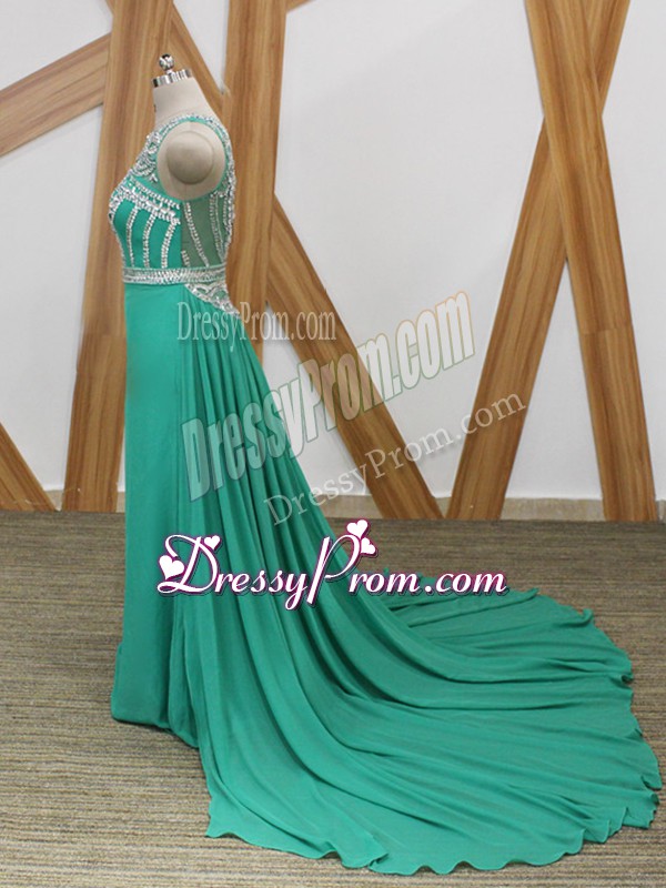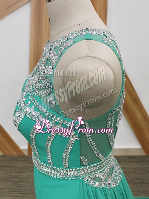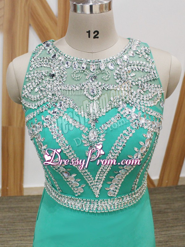 Neckline : ScoopShown Color : TurquoiseSilhouette : EmpireSleeve Length : sleevelessBack Detail : Side zipperFabric : ChiffonEmbellishment : BeadingOccasion : Prom,Military BallSeason : Spring,Summer,Fall,Winter