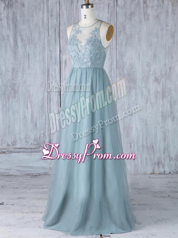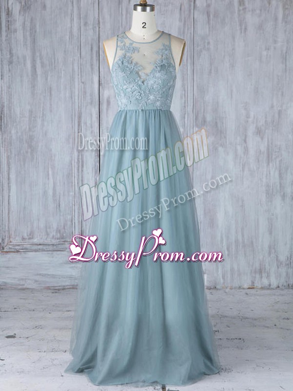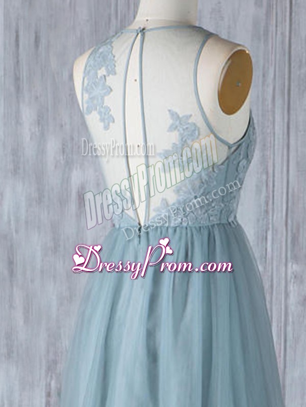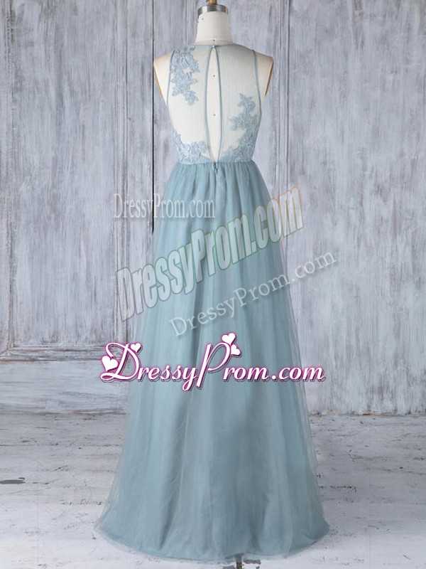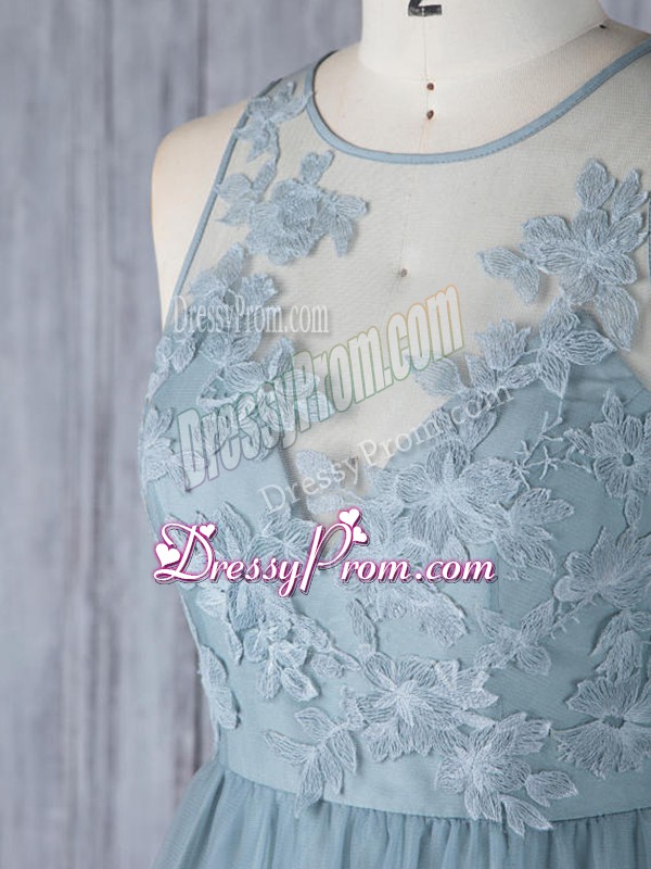 Neckline : ScoopShown Color : GreySilhouette : EmpireSleeve Length : sleevelessHemline : floor lengthBack Detail : ZipperFabric : TulleEmbellishment : AppliquesOccasion : Prom,Party,Wedding PartySeason : Spring,Summer,Fall,Winter